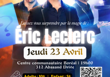 23 Avr 2026 au 23 Avr 2026 Centre communautaire Boréal - 312 Abasand Dr Fort McMurray T9J 1B2Préparez-vous à vivre une soirée… complètement magique !