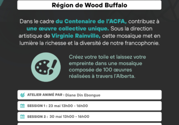 08 Mai 2026 au 08 Mai 2026 Centre communautaire Boréal - 312 Abasand Dr Fort McMurray T9J 1B2Avis aux francophones de Wood Buffalo !