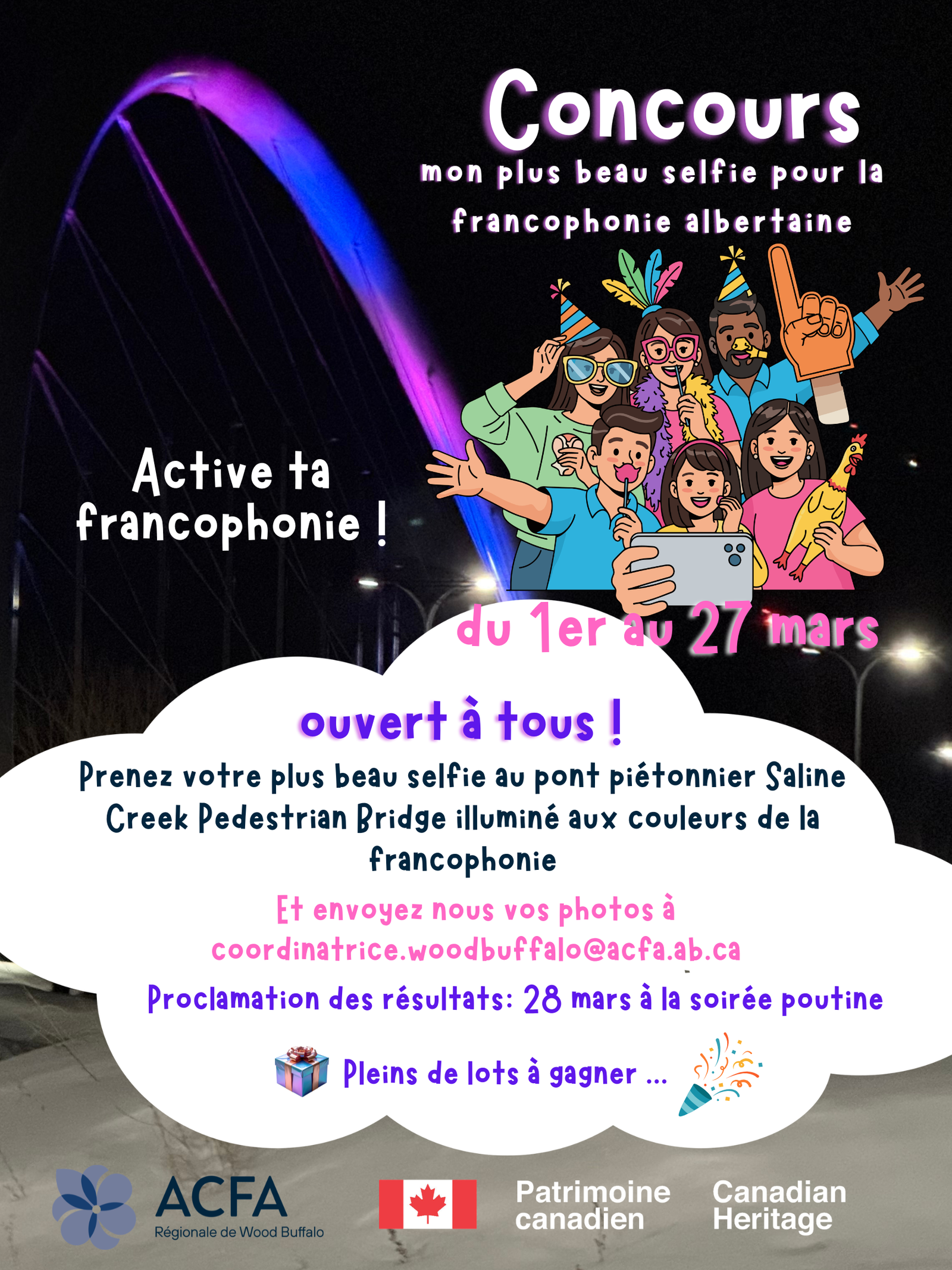 -Envoyez votre photo au plus tard le 26 mars à : coordinatrice.woodbuffalo@acfa.ab.ca